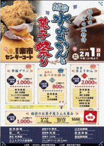 今年もやります、越前水ようかん&菓子祭り 2月1日、武生楽市にて開催。 水ようかんだけでなく、プリンやあべかわ餅もあります。 ARAT...